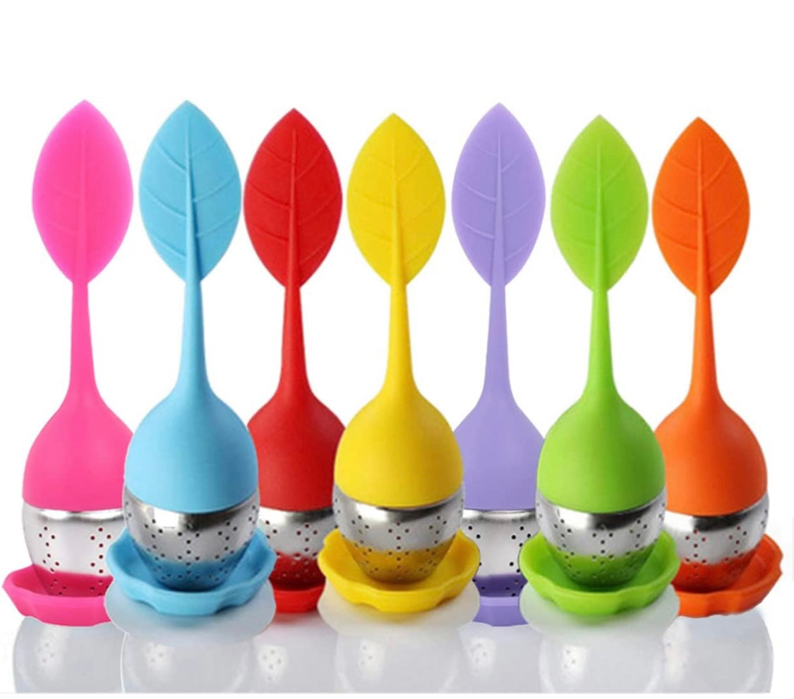 Silicone Handle Stainless Steel Strainer Drip Tray Included - Loose Tea Steeper